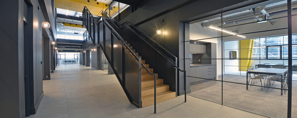 A key aspect of the refurbishment at One Express was the feature staircase, which spans all three floors. Watch how this staircase was installed within the building here: